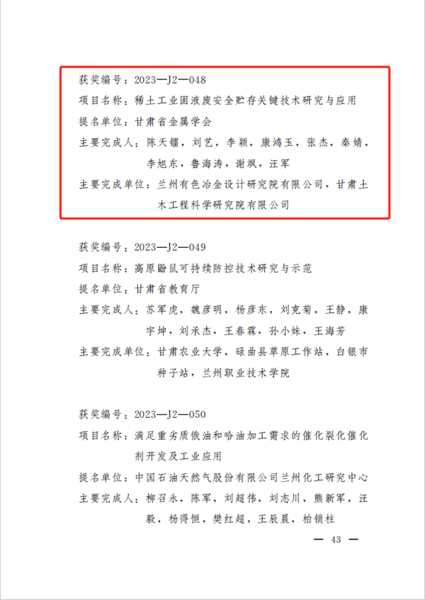 近日,甘肅省人民政府發布《關于2023年度甘肅省科學技術獎勵的決定》,甘肅工程咨詢集團2項科技成果喜獲“2023年度甘肅省科技進步獎二等獎”。