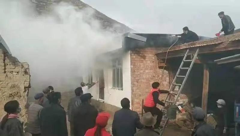 10月30日下午3點,交通監理公司負責幫扶的臨潭縣洮濱鎮馬旦溝村一戶村民家中突然冒出滾滾濃煙,火光在濃煙中忽隱忽現。著火是一座磚木結構彩鋼屋頂的新房,火從屋頂燒起,越燒越旺。著火的房屋旁邊堆放著多年的老柴火,干燥異常,一絲火星就能點燃,而與著火點緊鄰著的就是布局緊密的鄉親們的房屋,再往外圍則緊接著山林,如果火勢蔓延,后果將不堪設想。