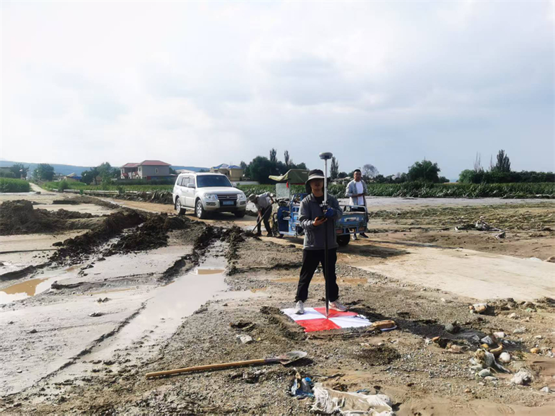 他正利用無人機對河道及沿線進行掃描,將其與災前衛星圖進行精確比對,從而為榆中泥石流災害后的受災情況分析提供關鍵數據支撐。突然,陳利斌眉頭一緊,迅速將測量儀器裝進工具箱,果斷跳下河道:“快!無人機定位有偏差,需要人工建立校準坐標。公路上沒條件,沿河道找平地!”