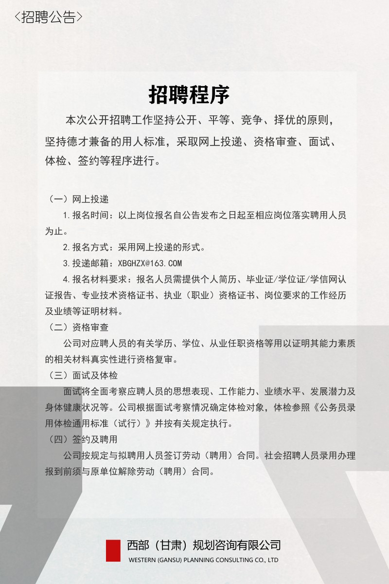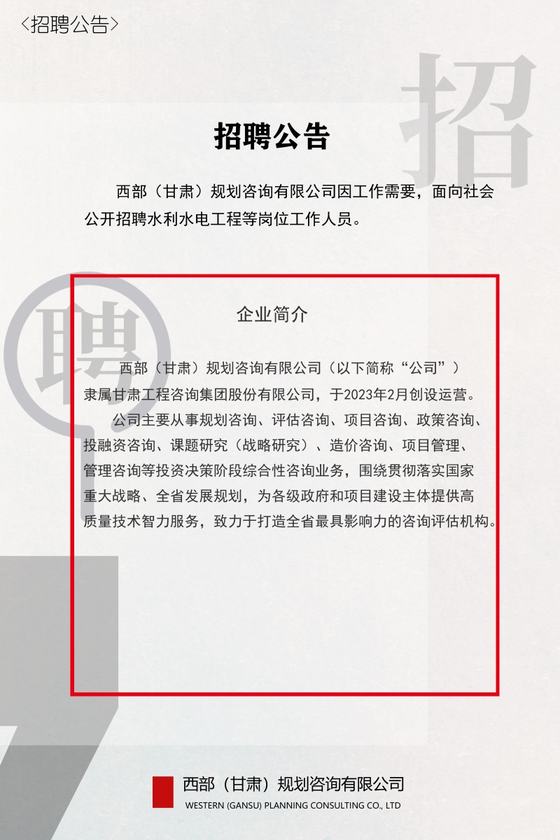 西部(甘肅)規(guī)劃咨詢有限公司2023年招聘公告