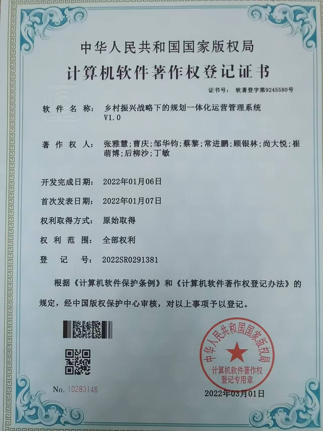 近日,從國(guó)家版權(quán)局傳來好消息,甘肅省建筑設(shè)計(jì)研究院有限公司自主研發(fā)的“鄉(xiāng)村振興戰(zhàn)略下的規(guī)劃一體化運(yùn)營(yíng)管理系統(tǒng)V1.0”,獲得國(guó)家版權(quán)局頒發(fā)的計(jì)算機(jī)軟件著作權(quán)登記證書。