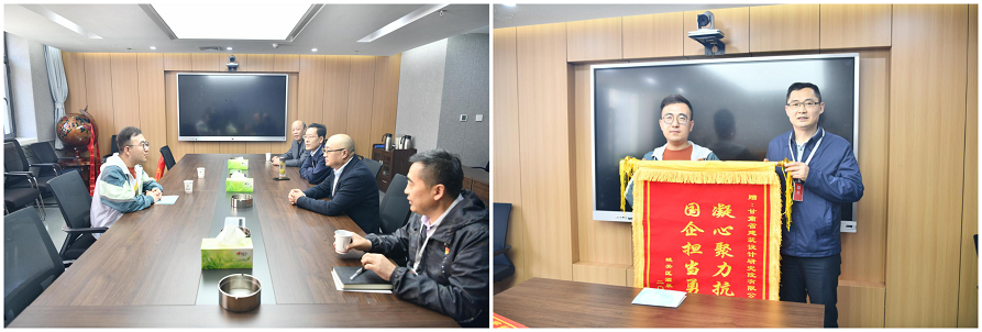 5月16日,甘肅省建筑設計研究院有限公司收到了來自蘭州市城關區酒泉路街道送來的感謝錦旗,錦旗上書寫著“凝心聚力抗疫情 國企擔當勇作為”。建筑設計院黨委書記李向軍、總經理曹慶、紀委書記丁永升及黨群工作部相關負責人接待來訪。