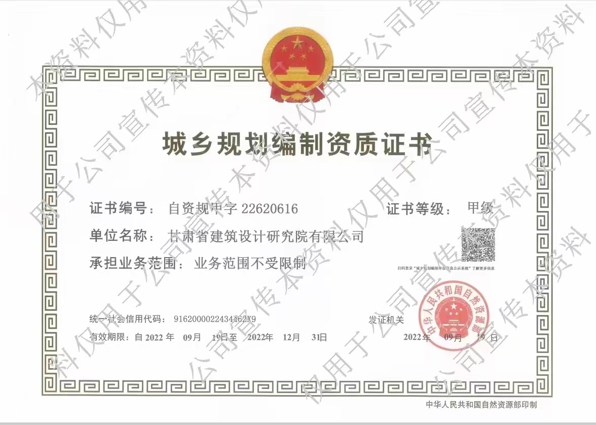 日前,國家自然資源部發(fā)布《自然資源部關(guān)于2022年第六批城鄉(xiāng)規(guī)劃編制單位甲級(jí)資質(zhì)認(rèn)定的公告》,甘肅省建筑設(shè)計(jì)研究院有限公司名列其中,喜添城鄉(xiāng)規(guī)劃編制甲級(jí)資質(zhì)。
