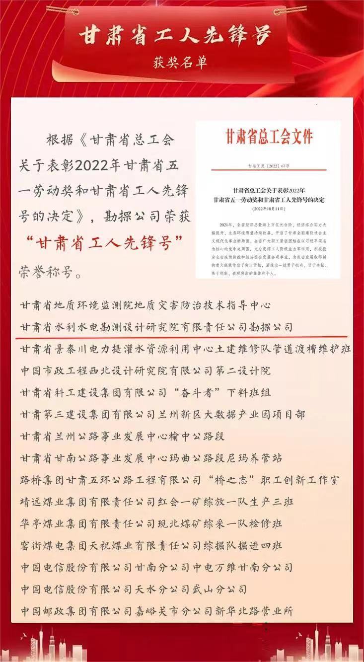 喜報!省水電設計院榮獲“甘肅省工人先鋒號”、“甘肅省創新型班組”榮譽稱號