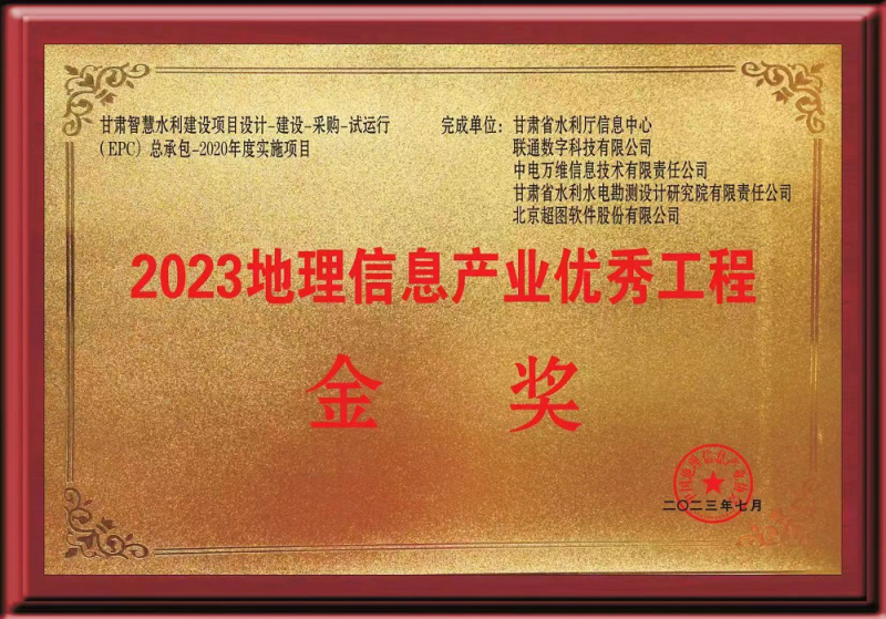 近日,第一屆中國測繪地理信息大會在浙江召開。由省水利廳實施、省水電設計院參與完成的“甘肅智慧水利建設項目設計-建設-采購-試運行(EPC)總承包-2020年度實施項目”榮獲2023中國地理信息產業優秀工程金獎。